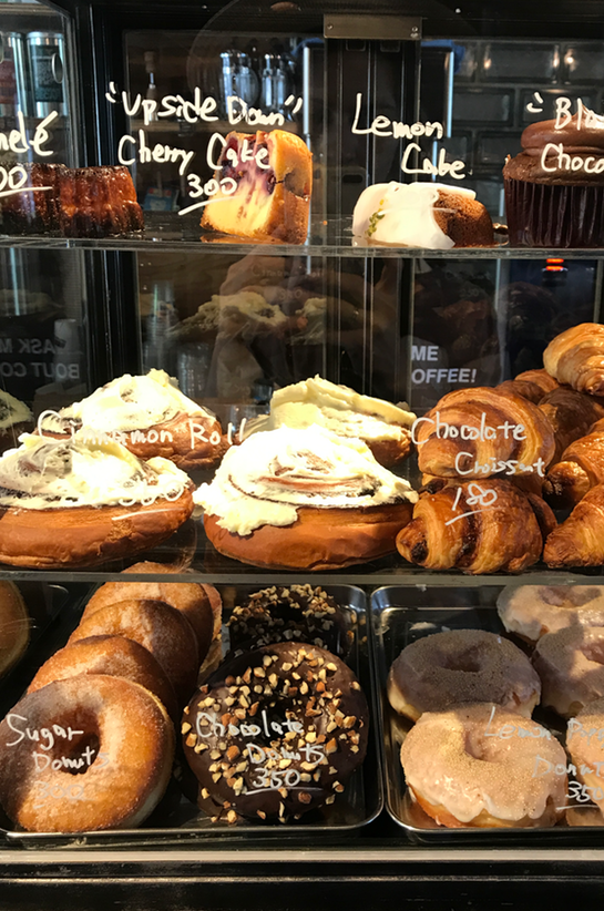 Ideally, you’d sit down in the sunshine sipping a coffee and snacking on one of the delicious pastries from the cake cupboard. Filled with donuts, scrolls and croissants, it was hard to leave without grabbing a treat.
