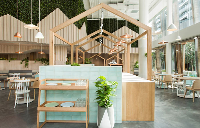The house frame over the central service counter is a quirky addition, and the vertical garden covering most walls make me feel like I’m eating alfresco.